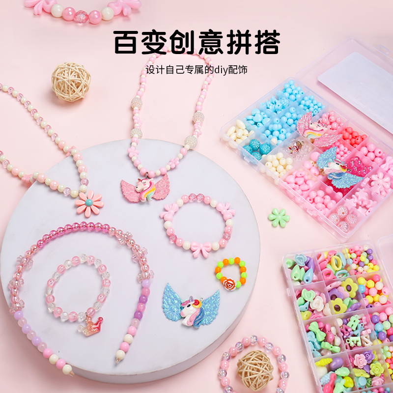 儿童串珠项链手链穿珠子女孩手工diy制作材料包女童宝宝水晶珍珠