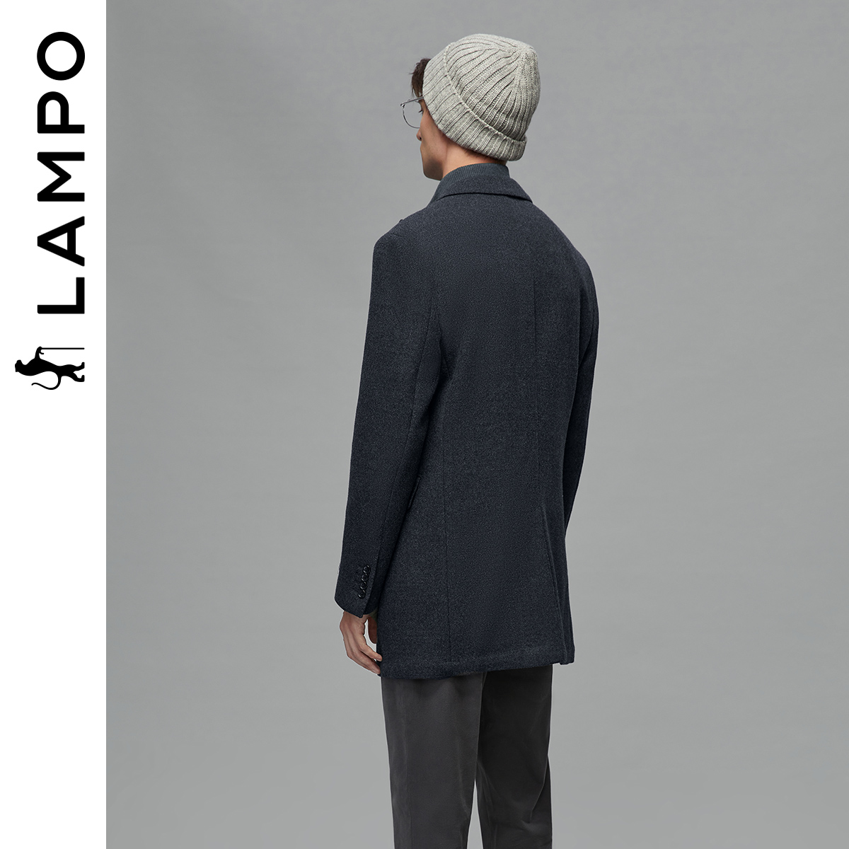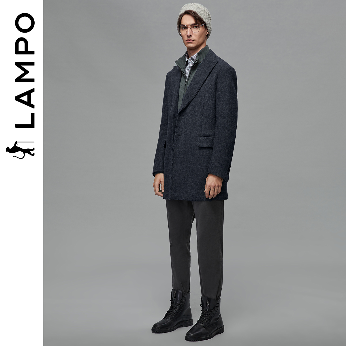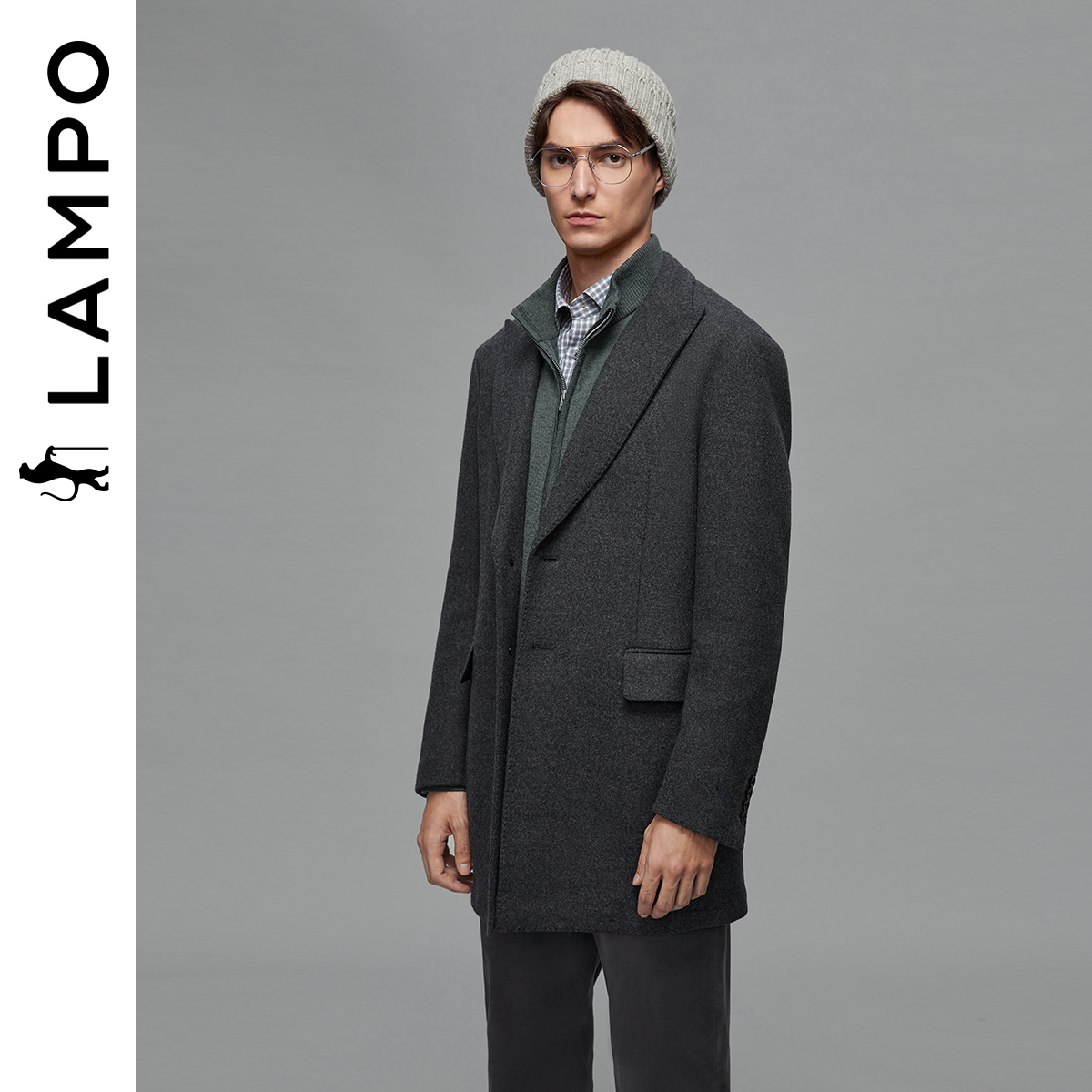 【阿拉善山羊绒】LAMPO/蓝豹男士大衣商务羊毛戗驳领呢子大衣毛呢
