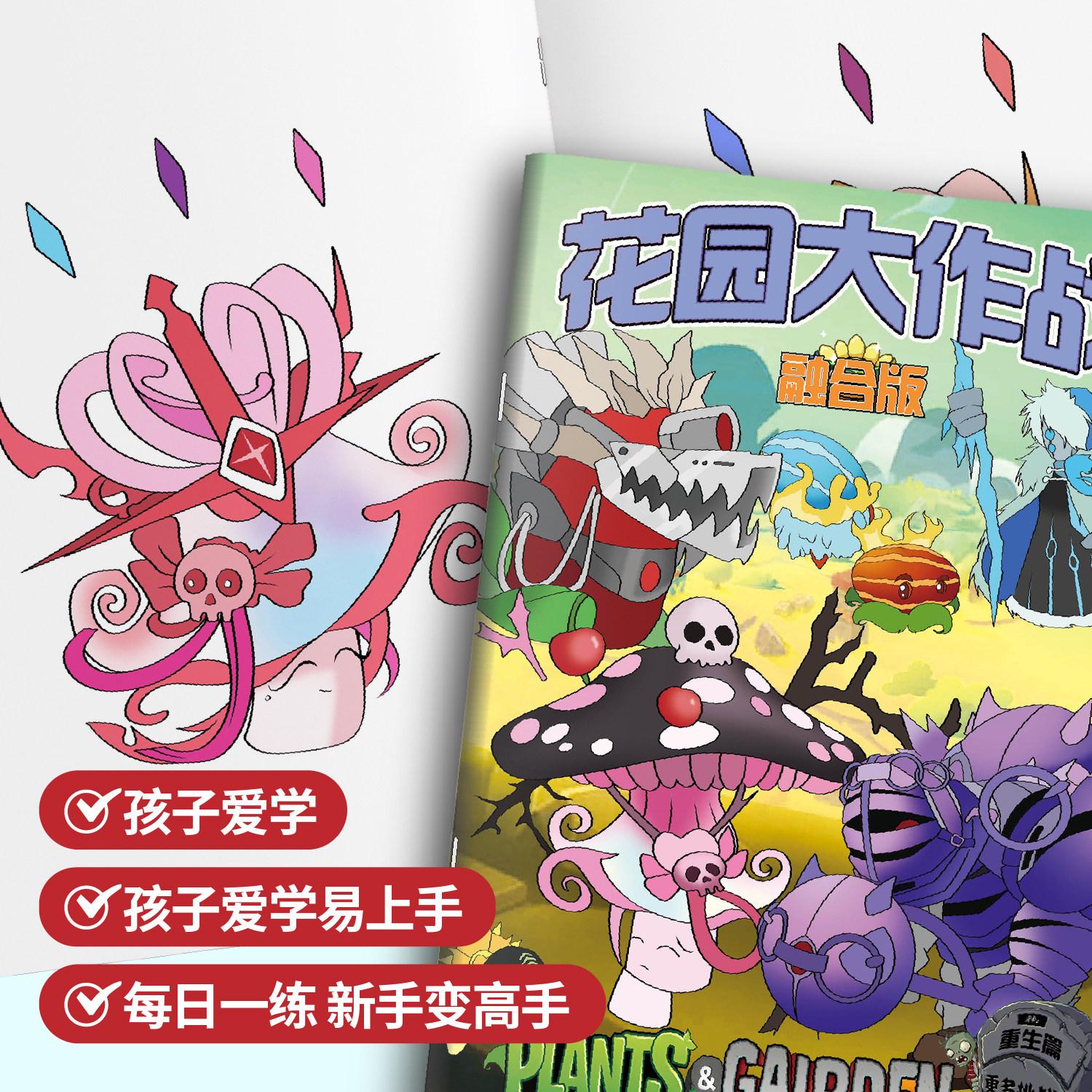 植物大战僵尸融合版儿童漫画描摹本画册涂鸦书手绘画描红本临摹专注力控笔练习入门零基础小学生卡通动漫绘本