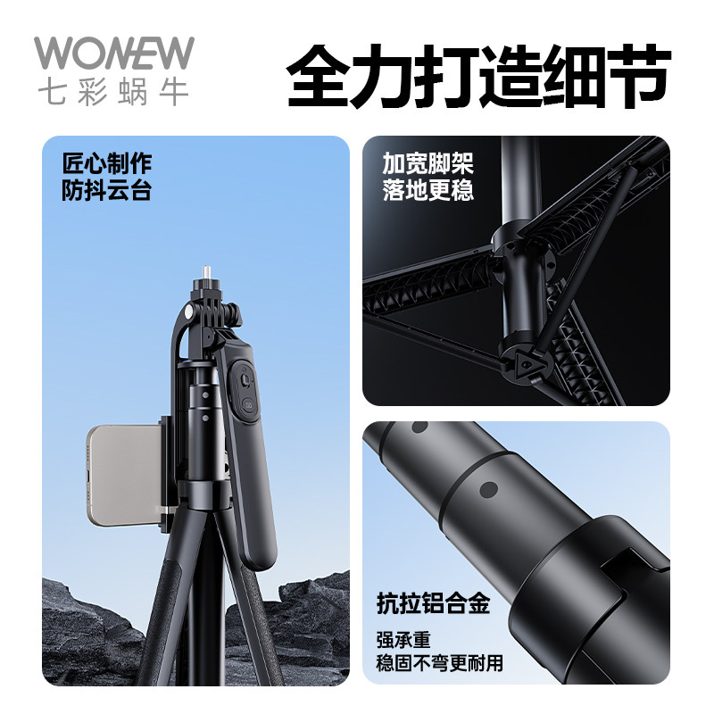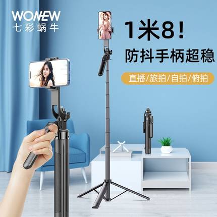 wonew七彩蜗牛手机支架自拍杆落地三脚架人脸跟踪补光灯拍摄防抖防风超稳旅游蓝牙遥控直播专用2024新款落地