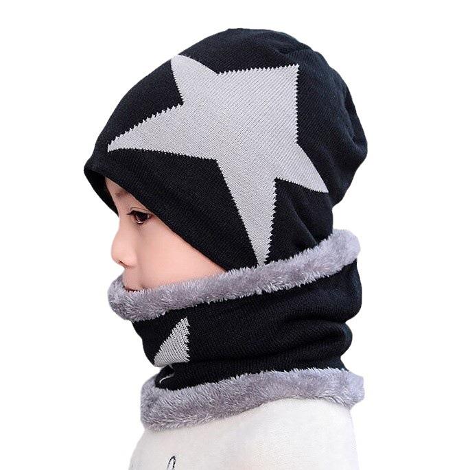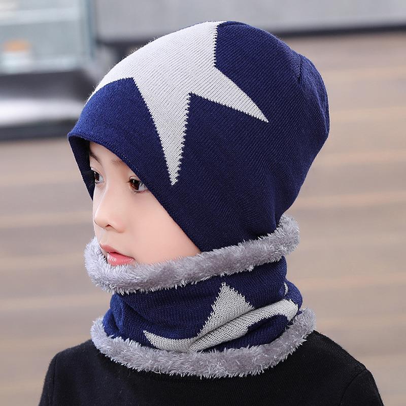 儿童帽子围脖套装秋冬天男孩毛线帽防风护耳帽女童加绒保暖针织帽