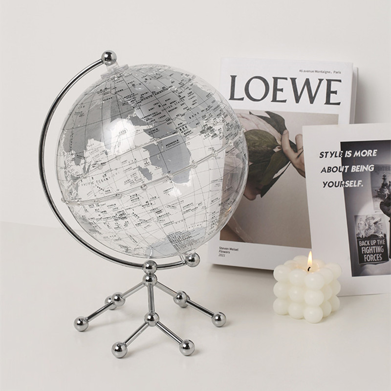 北欧轻奢水晶地球仪摆件创意办公室桌面书房高档家居客厅酒柜饰品