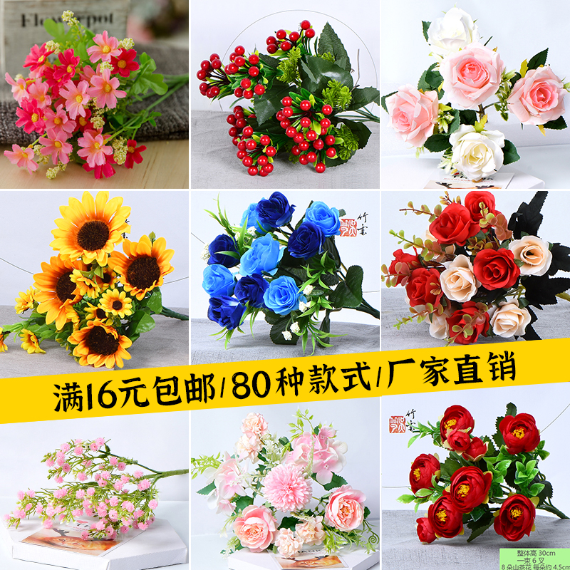 清仓单束假花玫瑰仿真花小束把花客厅装饰摆设花艺摆件餐厅塑料花