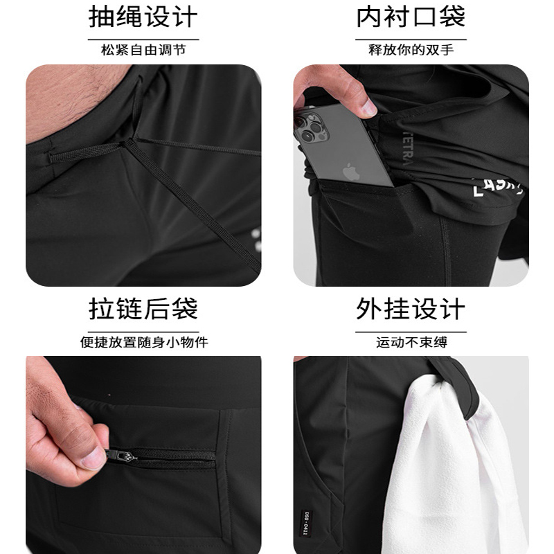 新款运动短裤男假两件速干弹力户外跑步训练双层篮球健身五分裤子