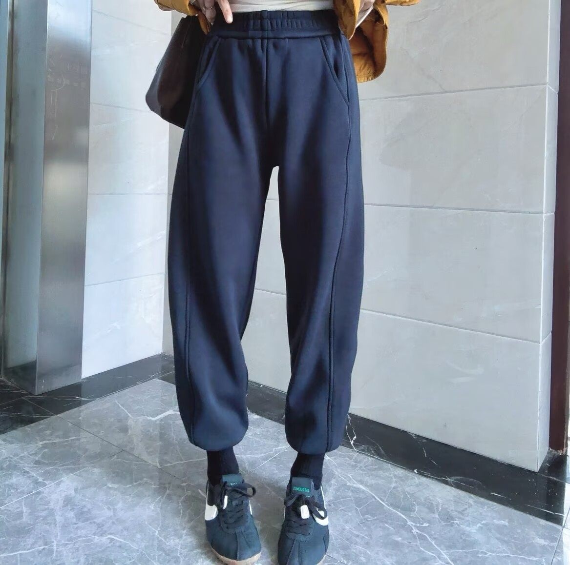 2025年秋冬季新款韩版休闲运动束脚裤黑色显瘦加绒加厚百搭卫裤女