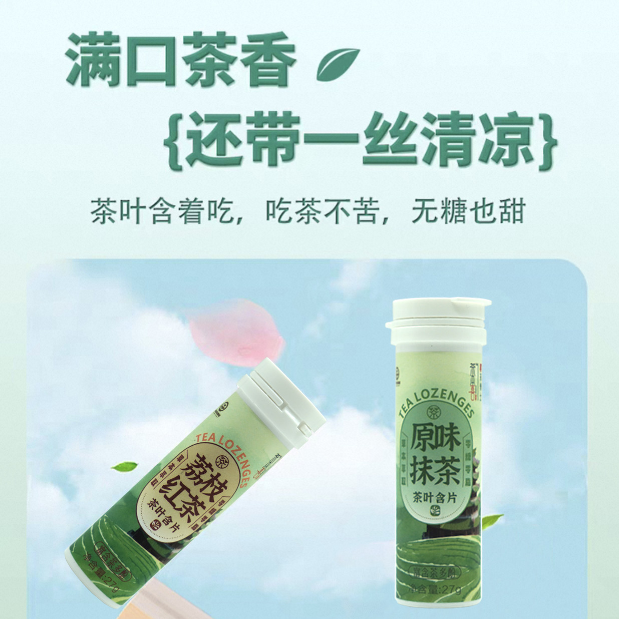 茶多酚清爽零糖零脂润喉茶叶含片抹茶味荔枝红茶味