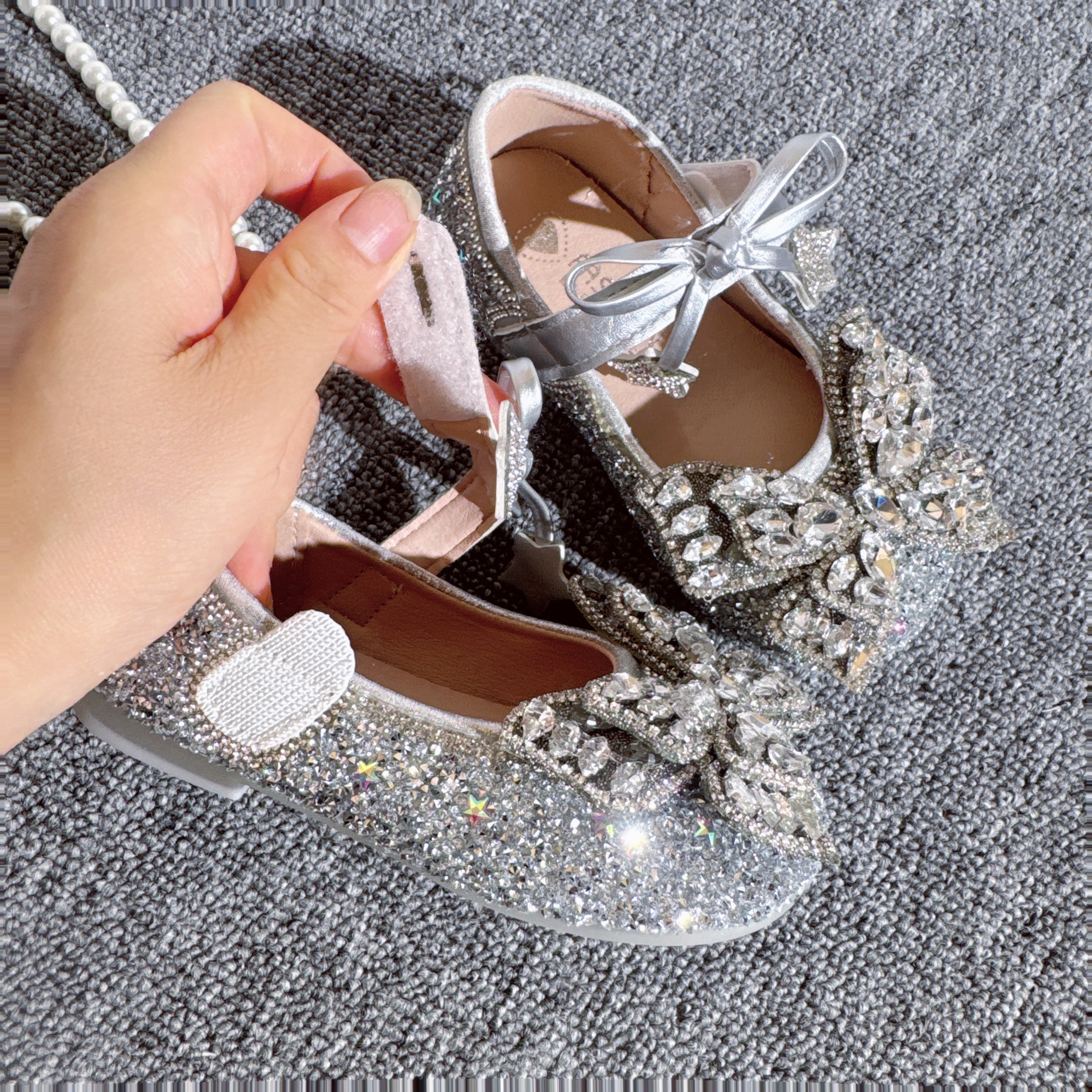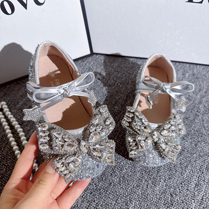 女童鞋水晶公主鞋新款儿童小皮鞋蝴蝶亮晶晶礼服鞋春秋季演出单鞋