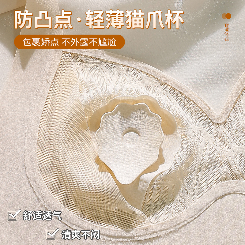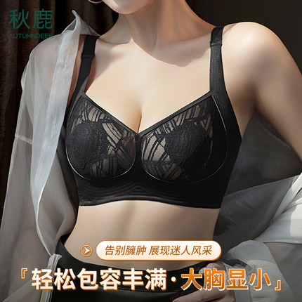 秋鹿内衣女大胸显小薄款全罩杯防下垂收副乳新款无钢圈文胸罩透气