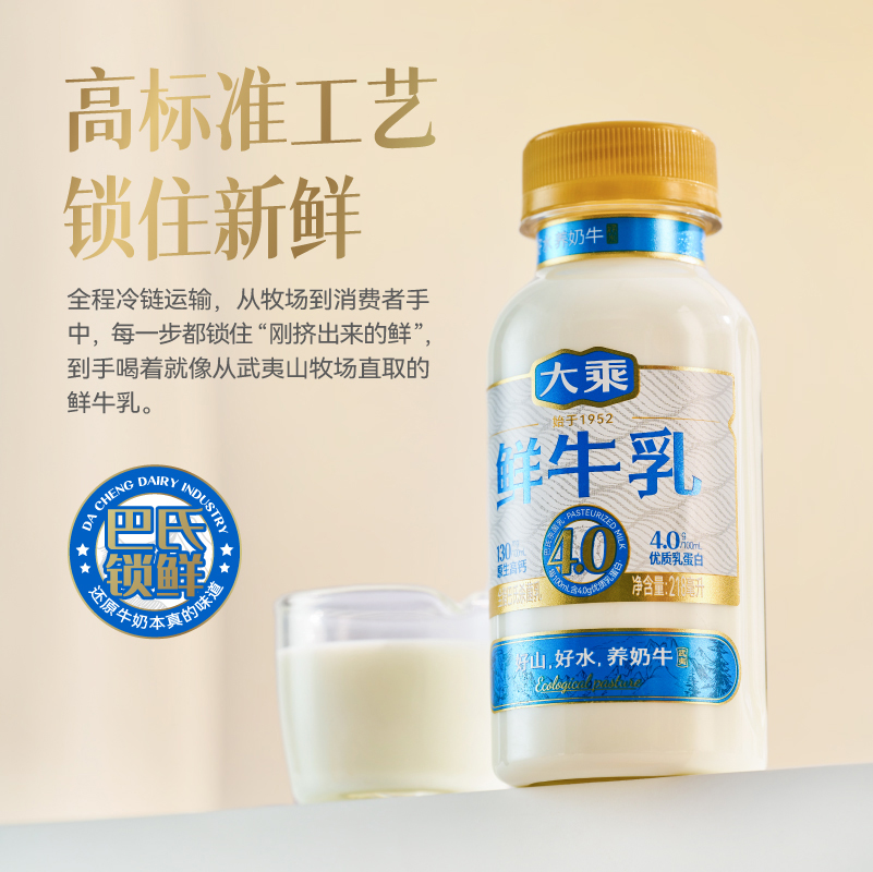 【顺丰发货】大乘武夷深山鲜牛乳4.0 冷藏全脂高钙牛奶 218ml/瓶
