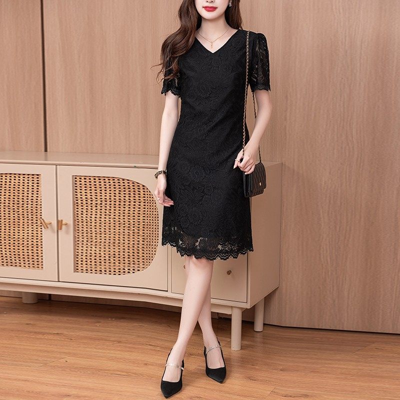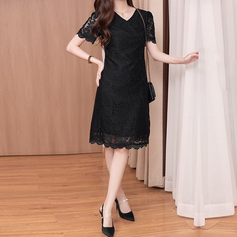 黑色大码显瘦蕾丝连衣裙气质款