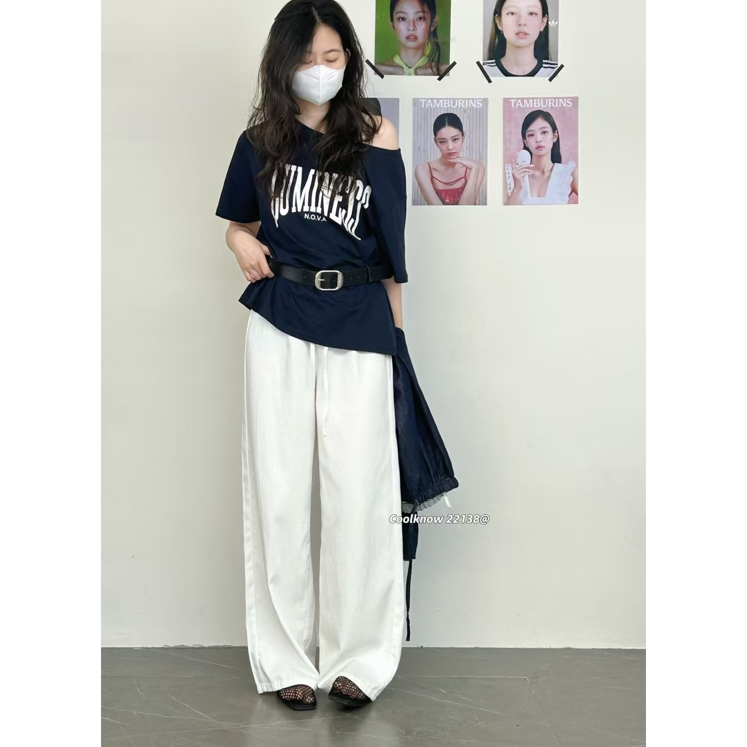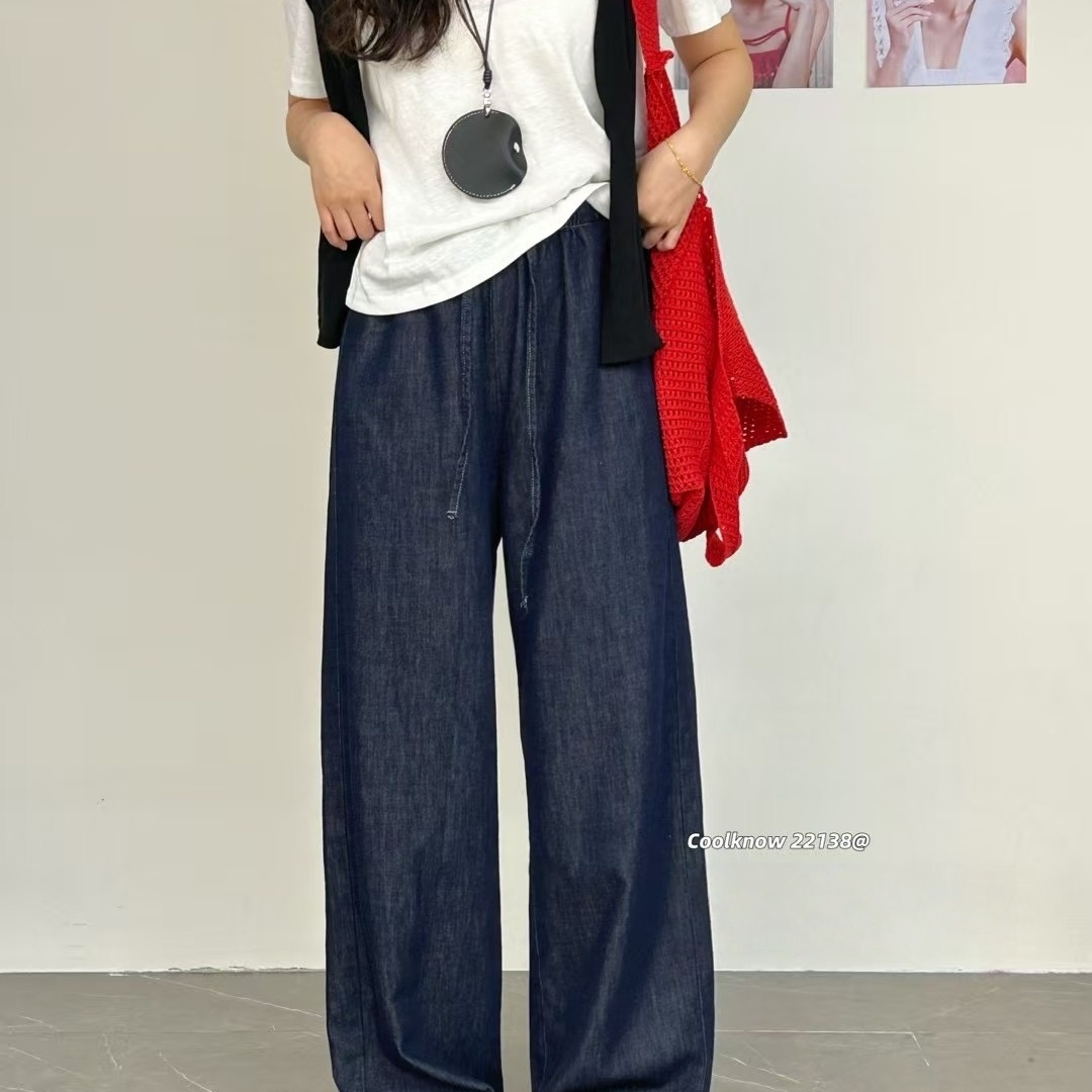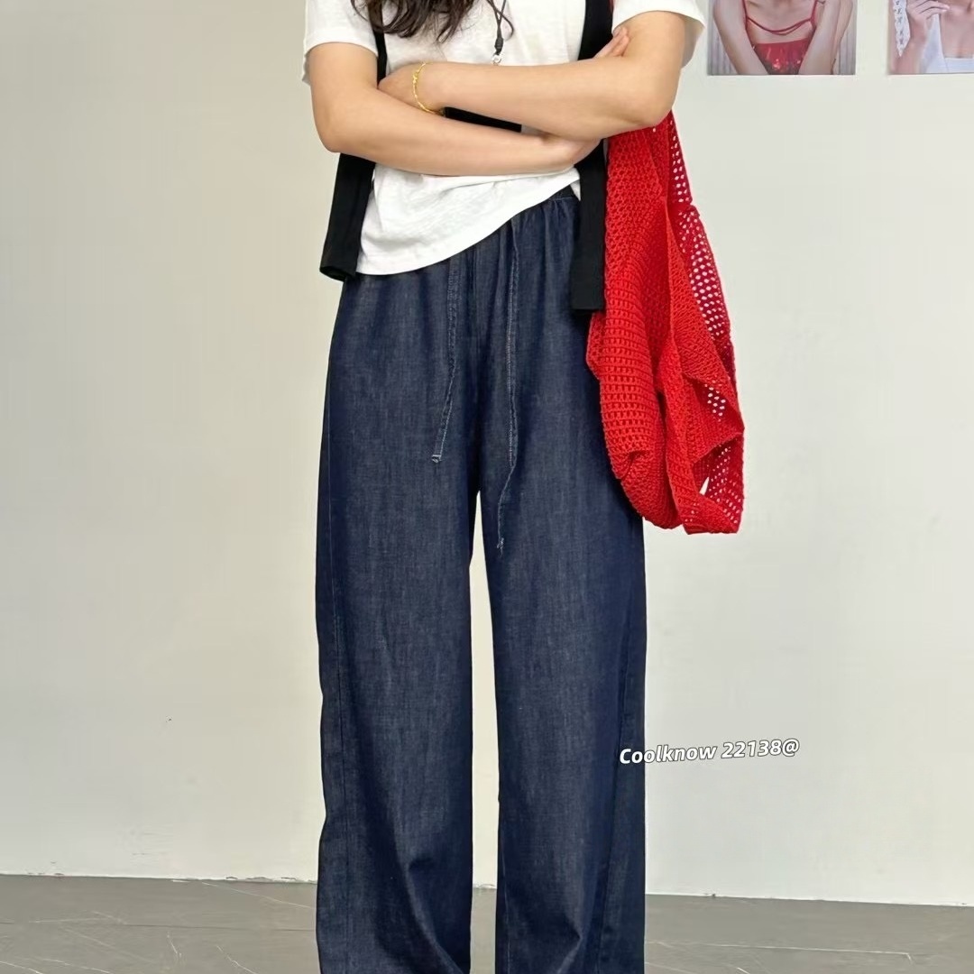 Coolknow酷知坊22138夏季新款胖mm休闲天丝薄款直筒阔腿牛仔长裤