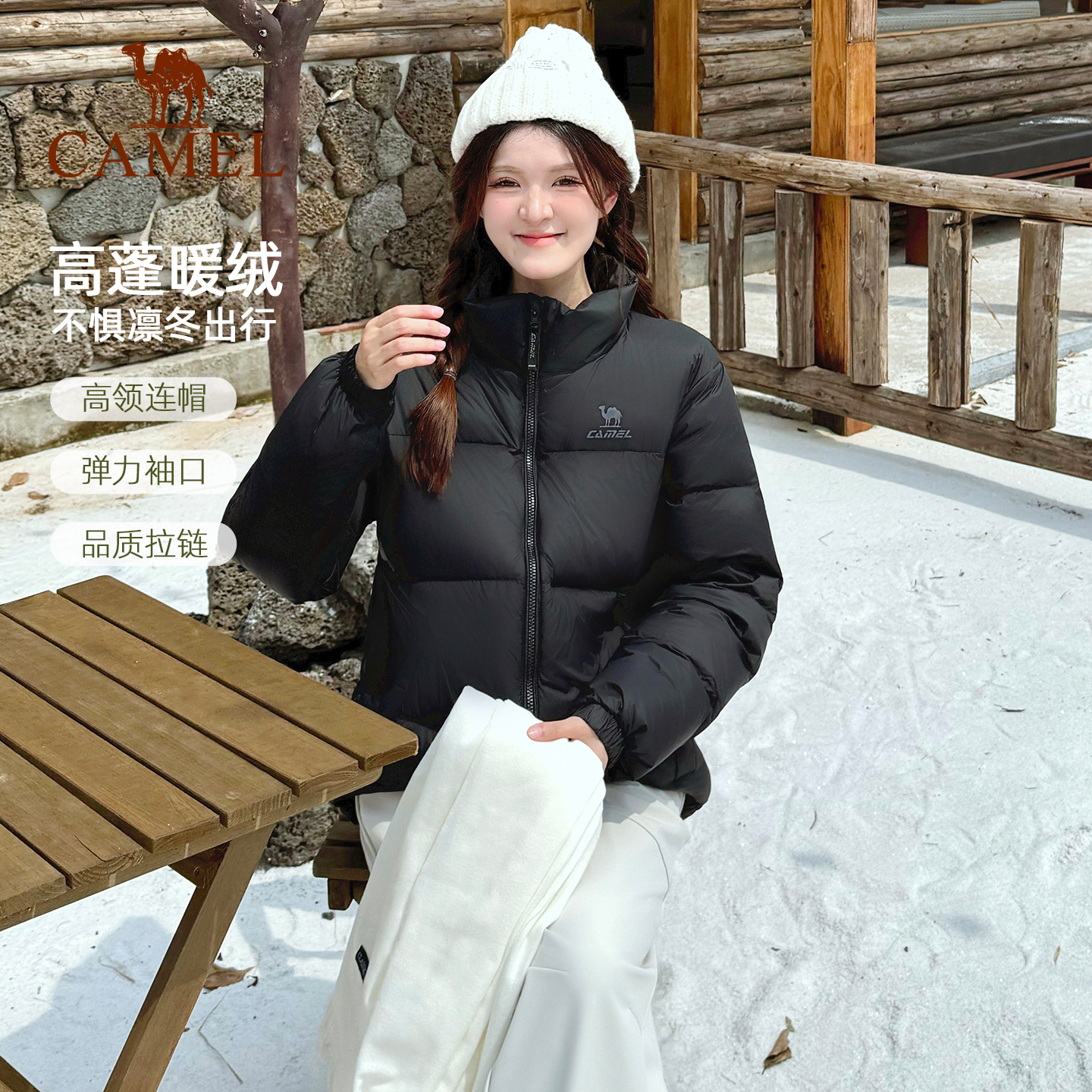 骆驼羽绒服运动2025新款秋冬季男女同款防油防风加厚科技连帽外套