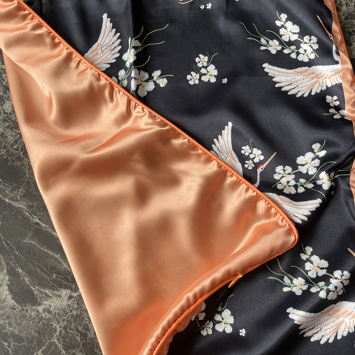 日本品质黑色仙鹤气质时尚印花抱枕夏季多功能洋气靠垫抱枕枕套办