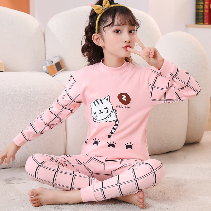 儿童纯棉秋衣秋裤套装中小男童女孩全棉毛衫打底内衣套装圆领中领