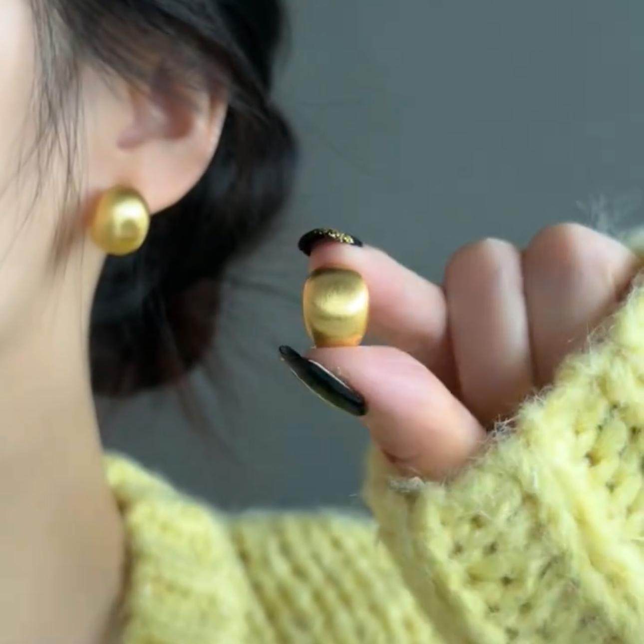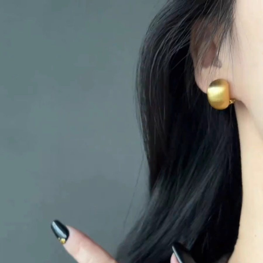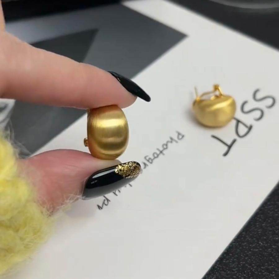 法式金色拉丝弧形豆豆耳钉2025新款爆款小众独特耳环轻奢气质耳饰