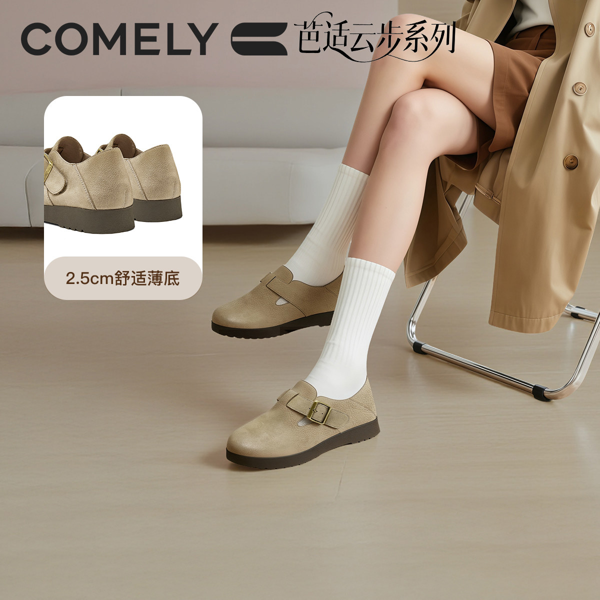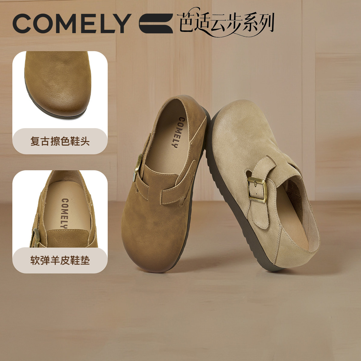 康莉复古勃肯鞋女春秋季新款牛皮厚底一脚蹬懒人鞋博肯鞋商场同款