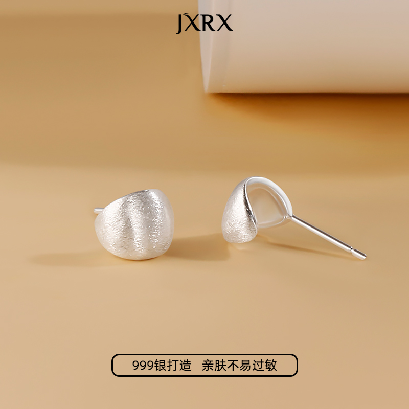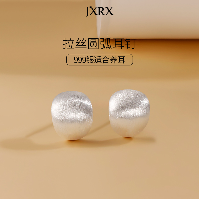 JXRXs999纯银拉丝耳钉女2025新款爆款小众独特耳环高级感足银耳饰