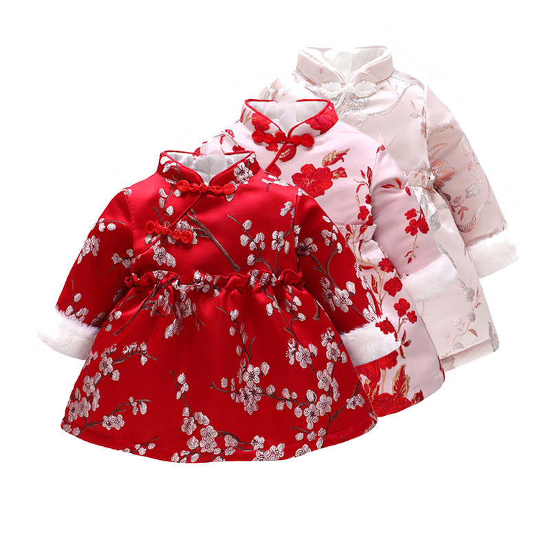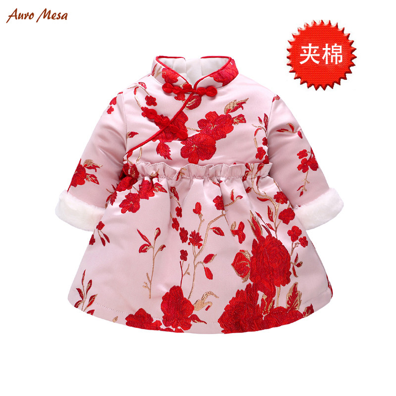 女宝宝加绒长袖唐连衣裙女旗旗袍