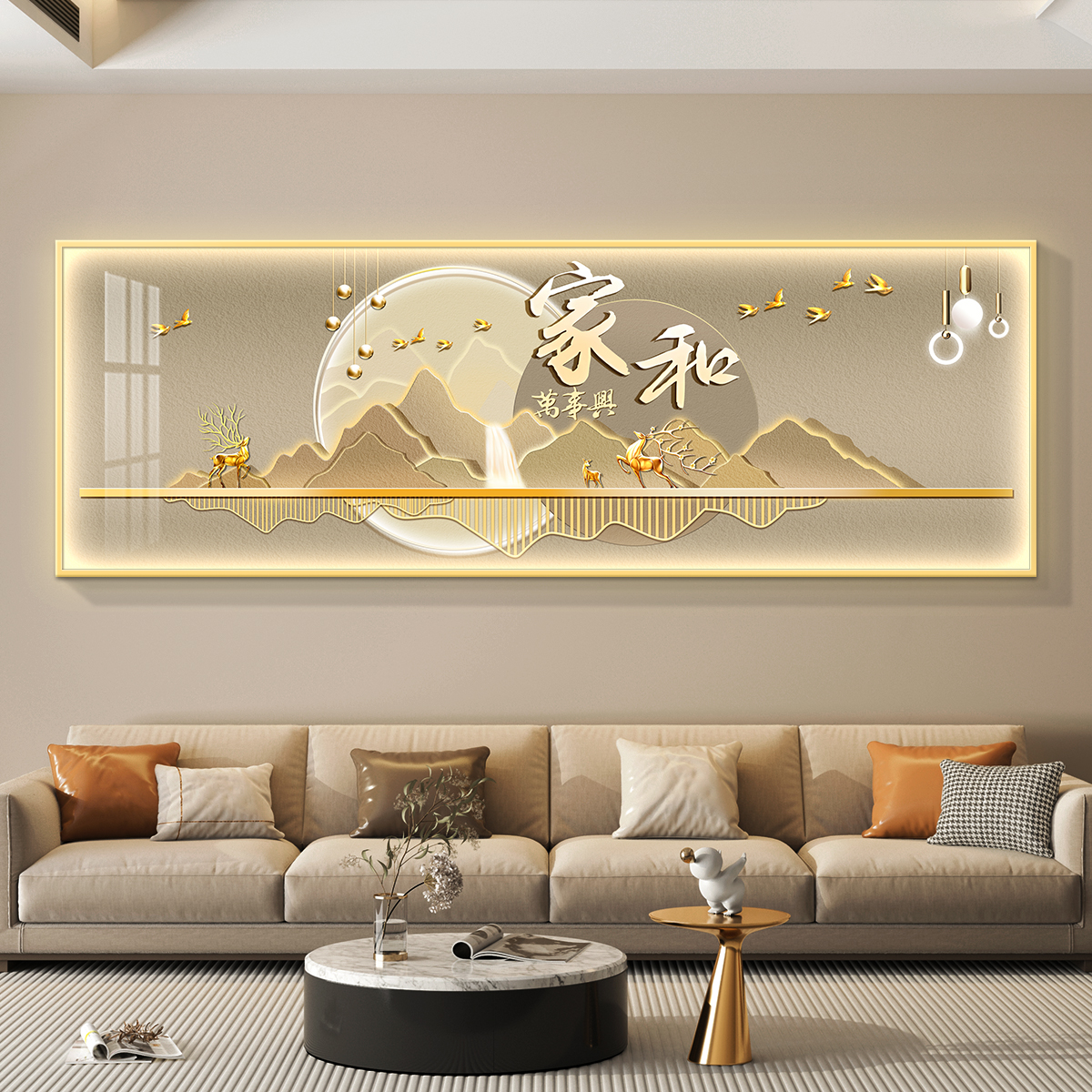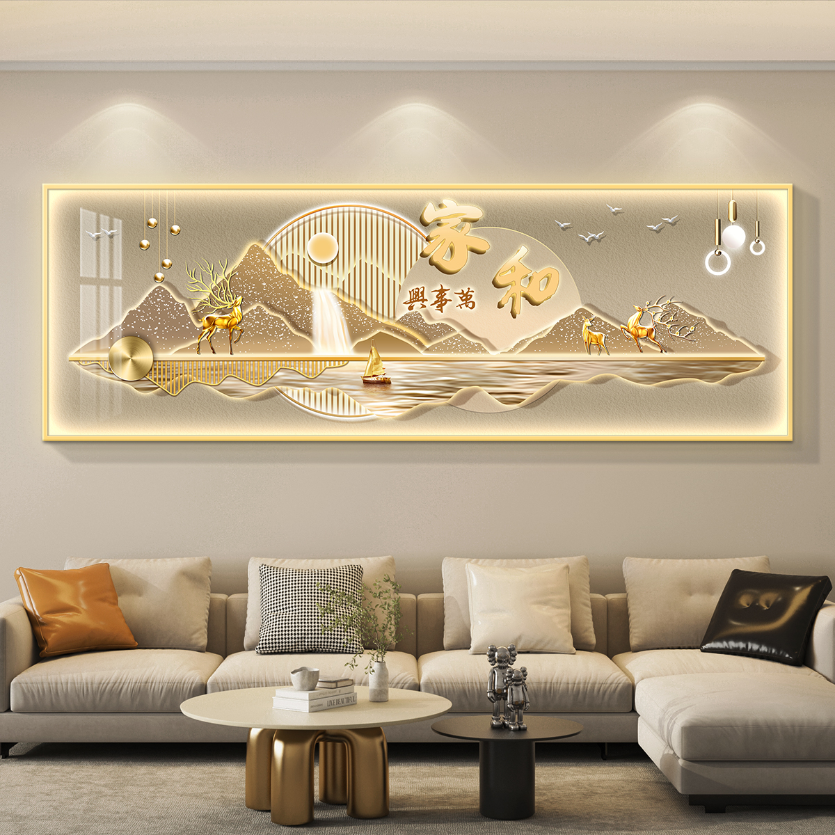 家和万事兴led带灯轻奢客厅装饰画沙发背景墙挂画简约现代高级感