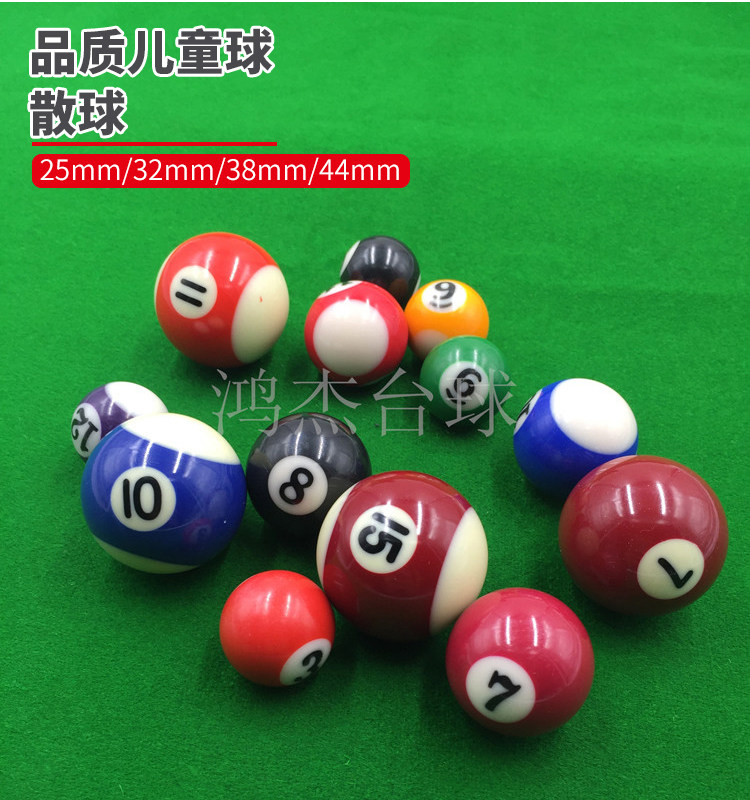 儿童台球子散球25MM树脂16彩38MM黑八母球美式单卖44MM斯诺克小球