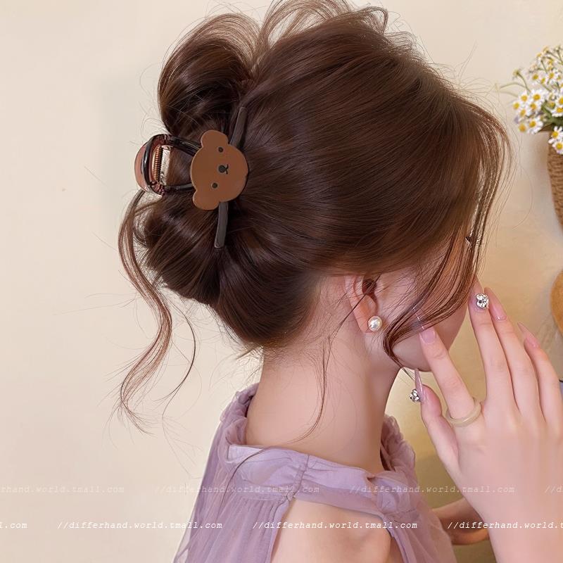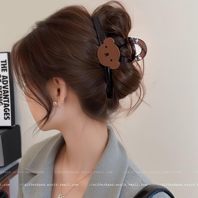 小熊发夹抓夹女士韩系高级感2025新款后脑勺鲨鱼夹高质量夹子头饰