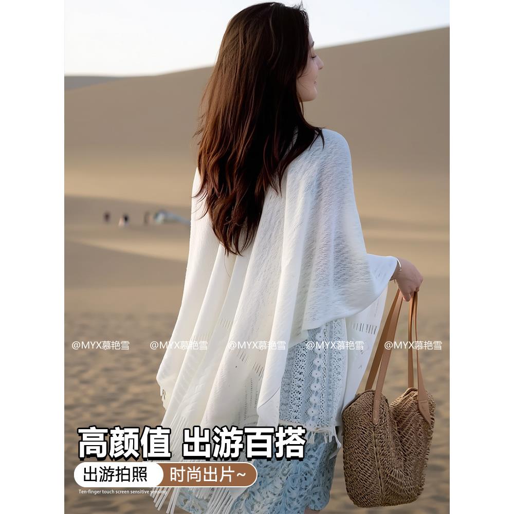 披肩女外搭旅游拍照针织开衫镂空流苏旗袍白色斗篷空调房披风围巾