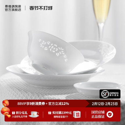 景德镇官方陶瓷饭碗高颜值玲珑餐具套装家用釉下无彩新款面碗汤碗