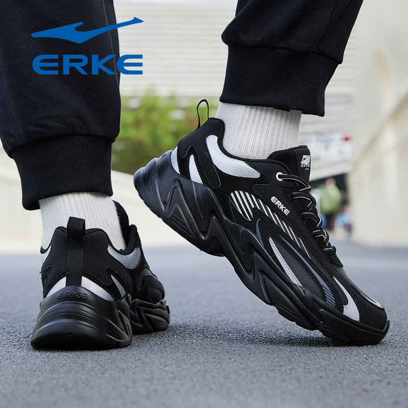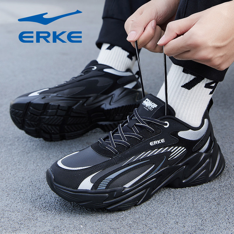 鸿星尔克男鞋2026冬季新款网面透气黑武士学生皮面黑色运动跑步鞋