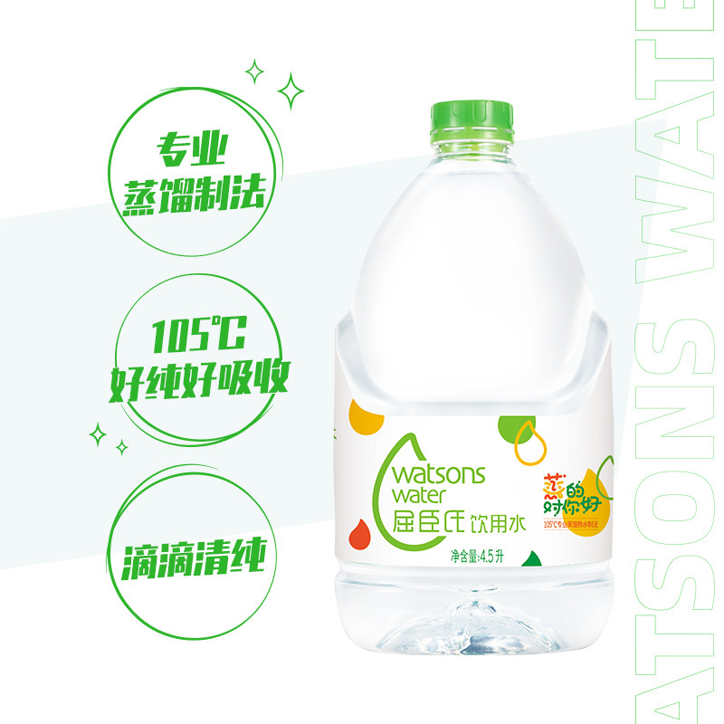 屈臣氏蒸馏水正品4.5L*4桶整箱大桶装饮用水敷脸水疗补水非纯净水