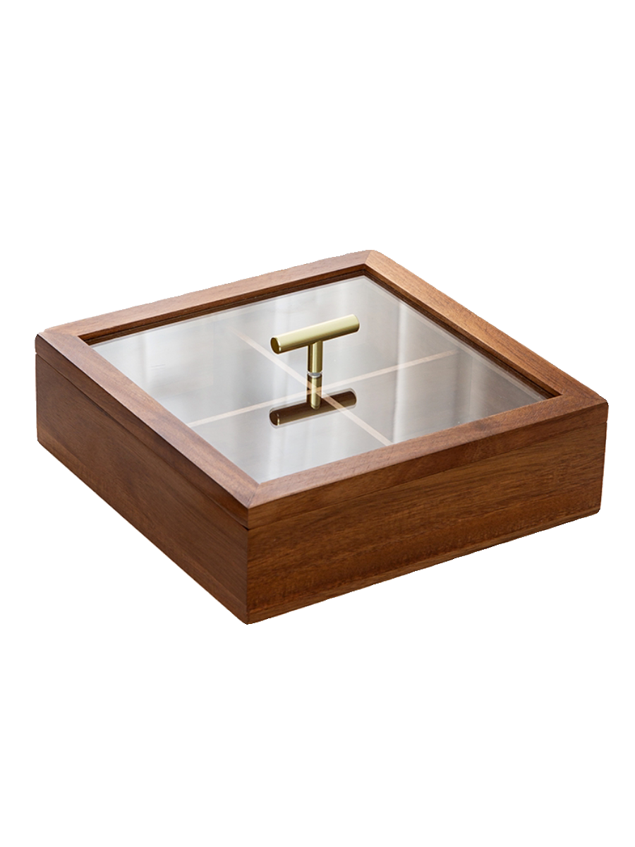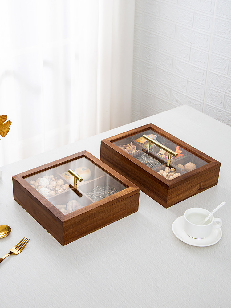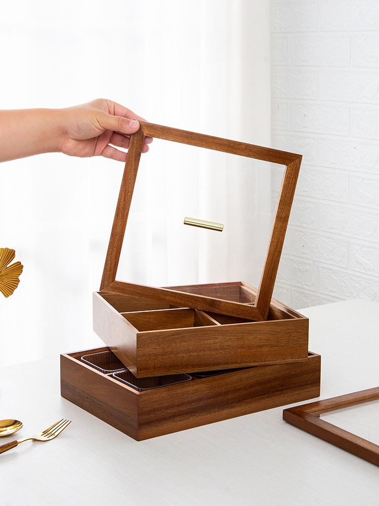 津硕手工实木复古钢化玻璃干果盒