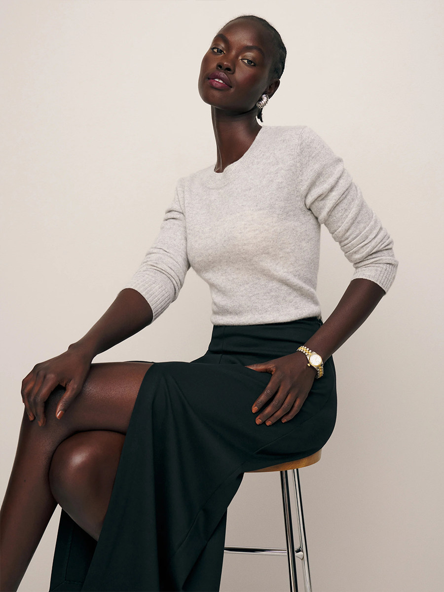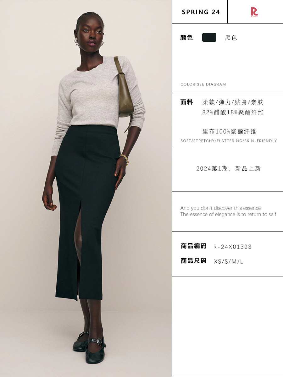 归己/半身裙西装裙黑色包臀裙秋冬前开叉半身裙中长款职业裙子女