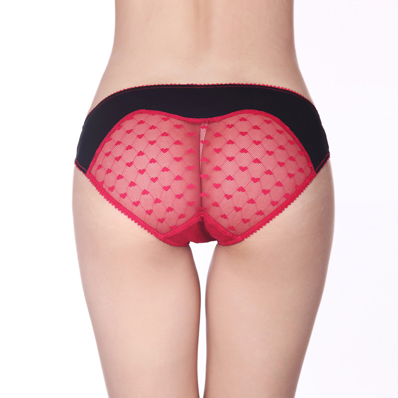 超性感莫代尔透视网纱拼接大桃心 超薄可爱透气舒适女士三角内裤