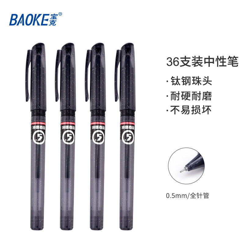 宝克1808中性笔签字笔写字笔学生水笔水性笔黑色针管型水晶笔杆