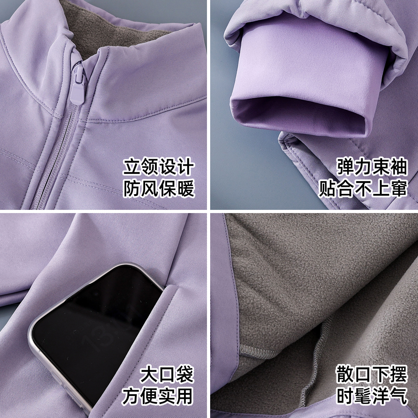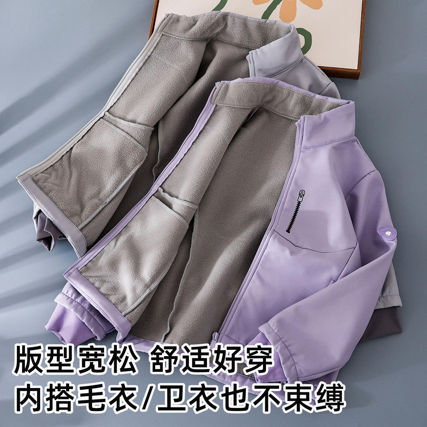 蔚未来儿童冲锋衣秋季2025新款女童加绒防风外套户外防水拉链上衣