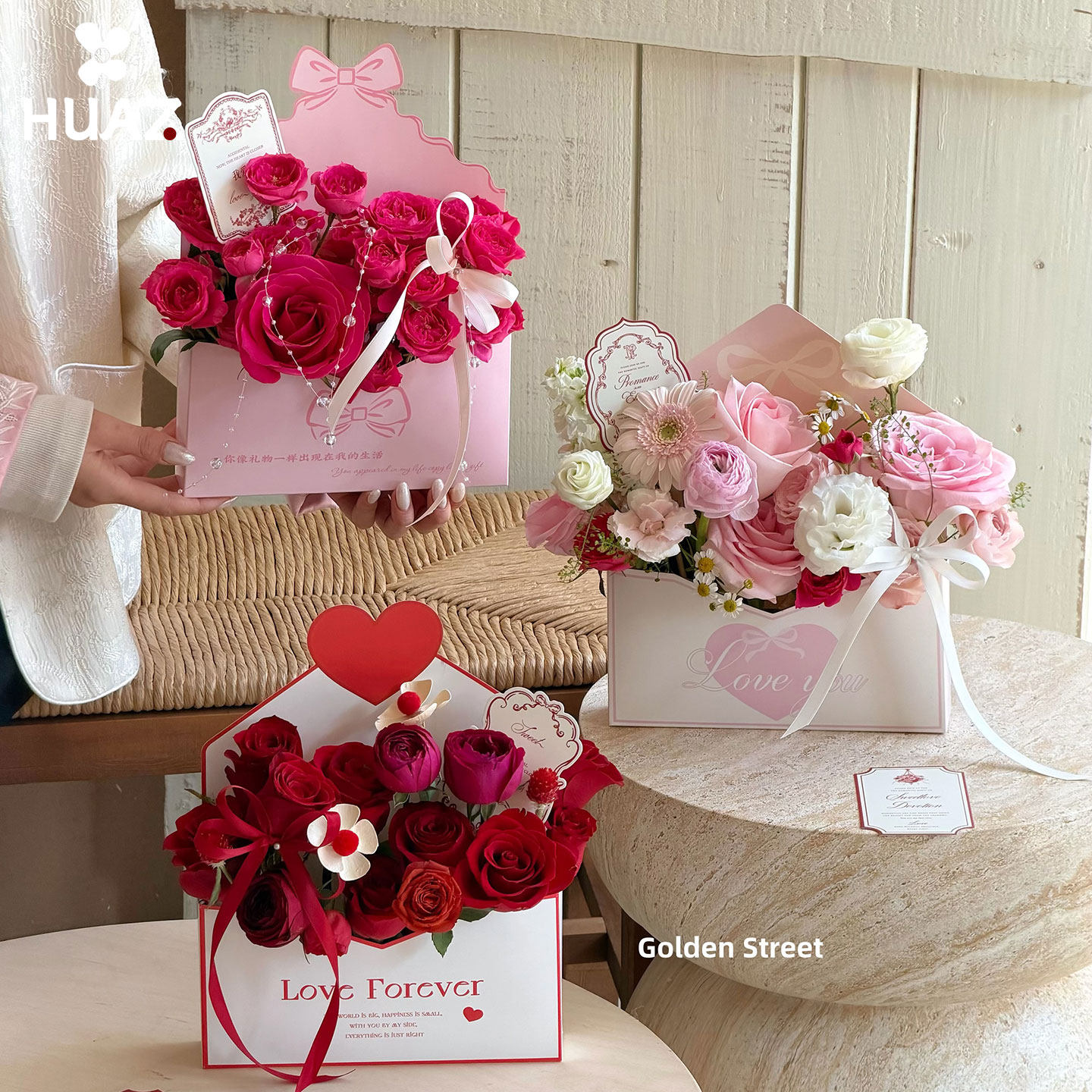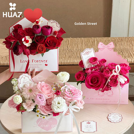 情书盒创意心形信封花盒玫瑰花束包装盒情人节生日礼物送花