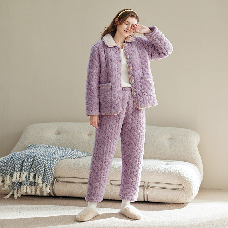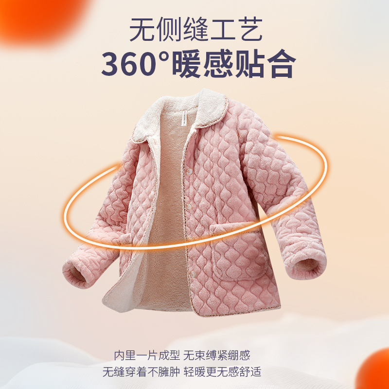 芬腾无侧缝珊瑚绒夹棉睡衣女