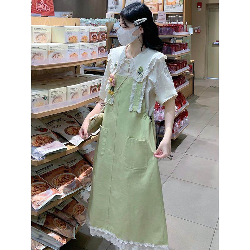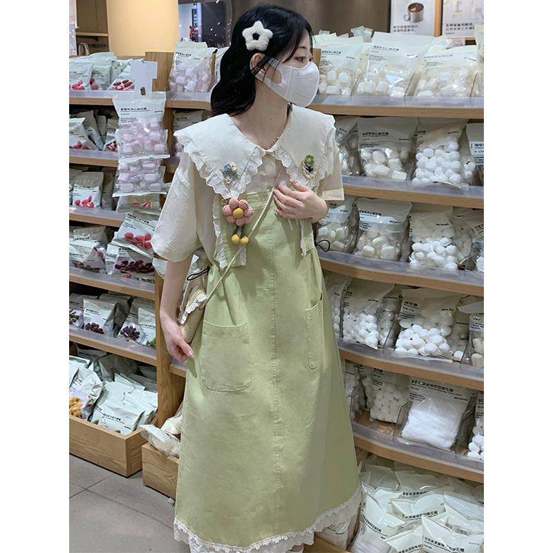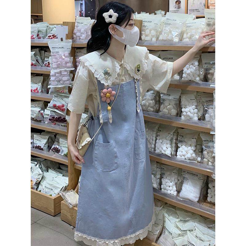 初中生短袖娃娃领衬衫少女夏季套装裙高中学生清新甜美背带连衣裙