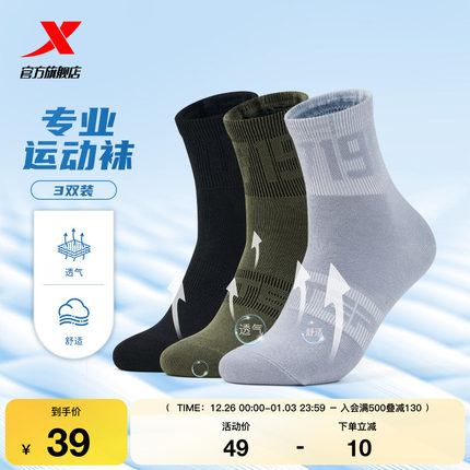 3双装特步专业跑步袜子女2025年秋季中筒徒步袜速干户外登山袜男