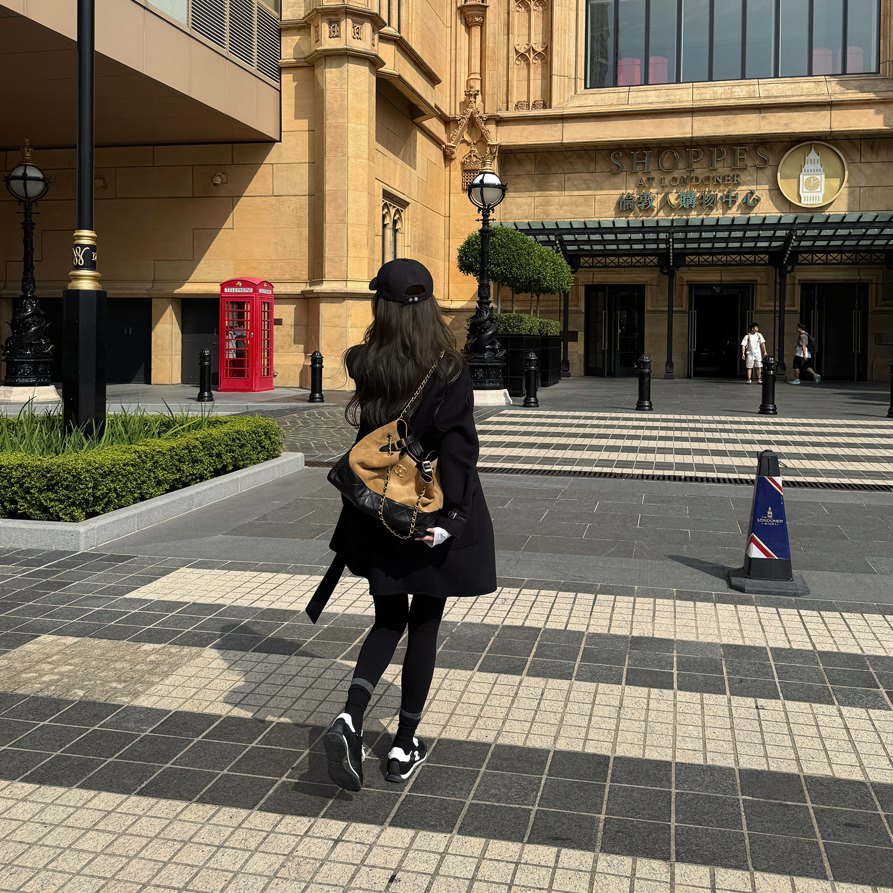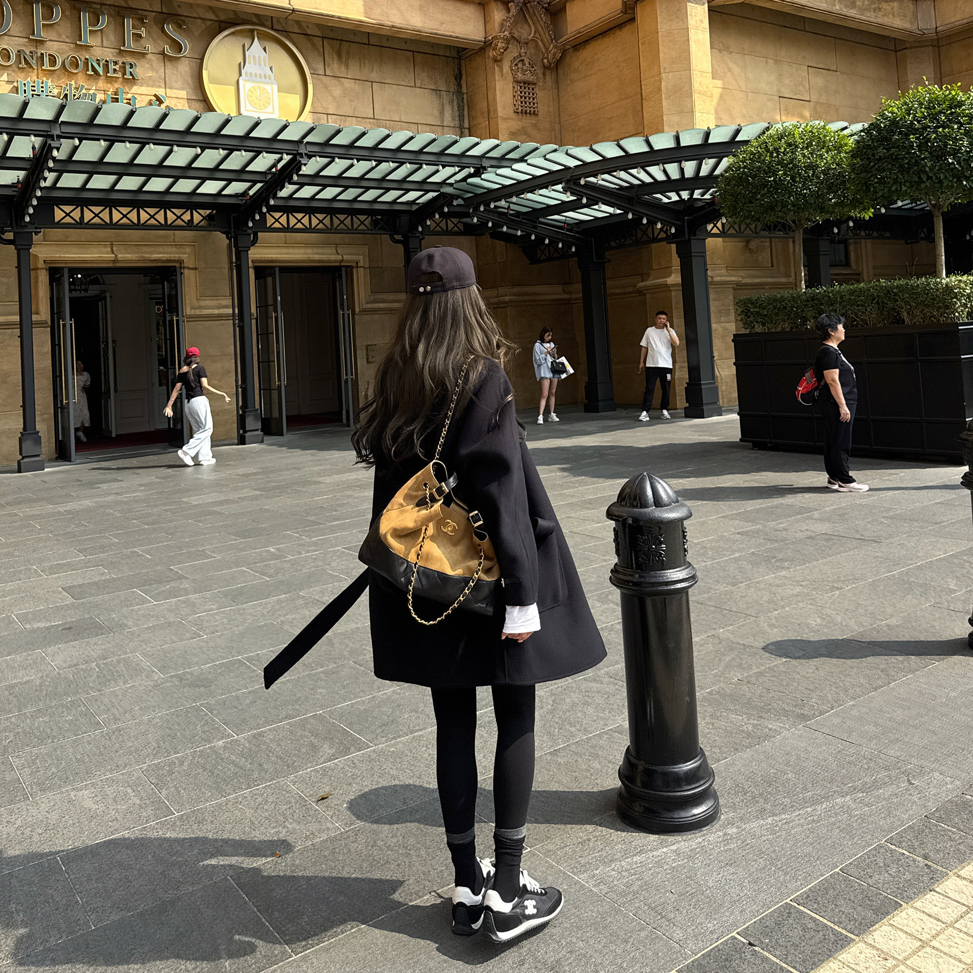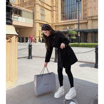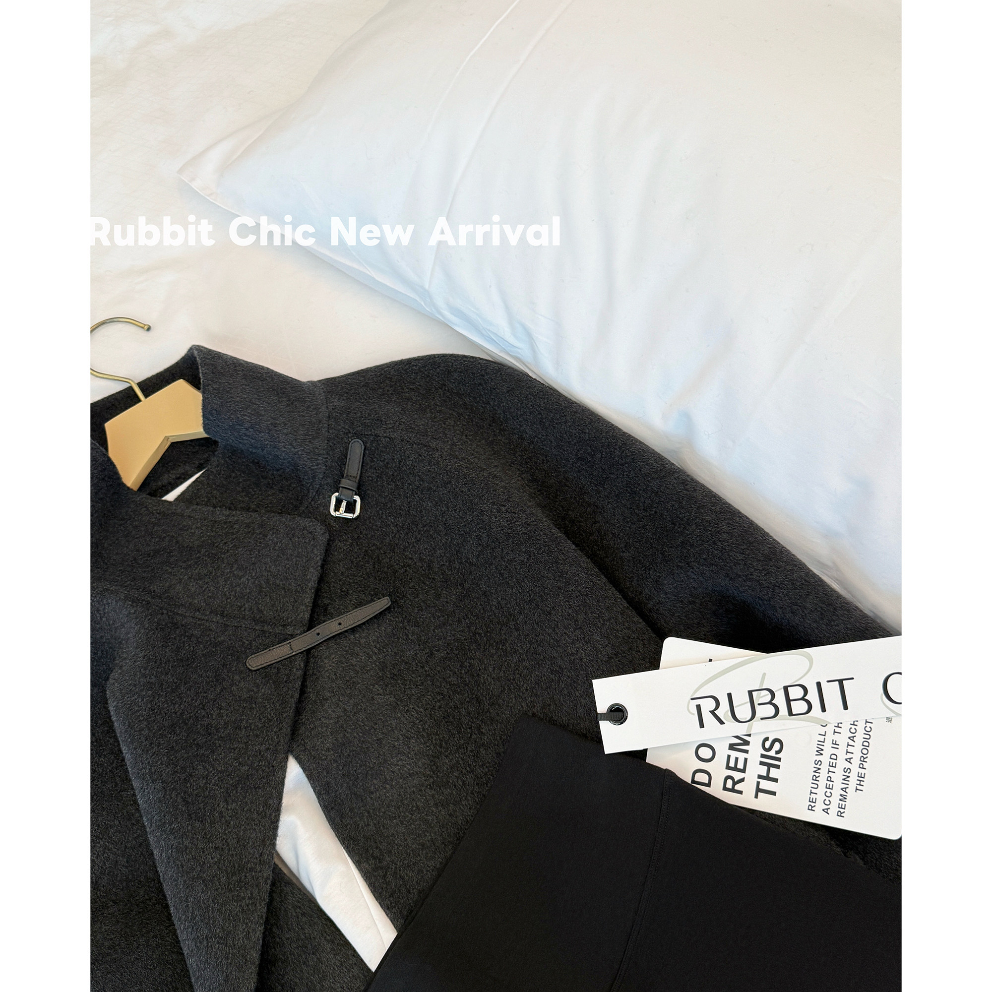 RUBBIT轻奢系 高智通勤澳羊毛双面呢大衣 皮扣羊绒中长腰带款外套