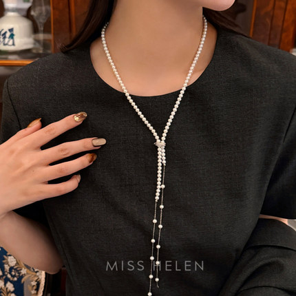 MISS HELEN多用天然珍珠Y字链S925银项链小众经典百搭明星同款
