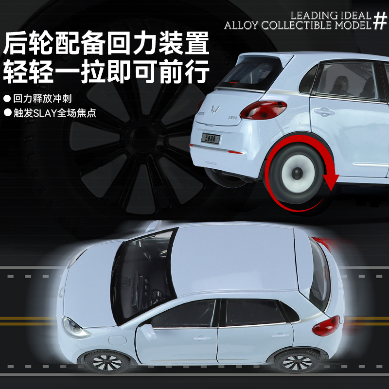 1:24正版五菱缤果仿真合金小汽车模型智能语音玩具车儿童摆件收藏