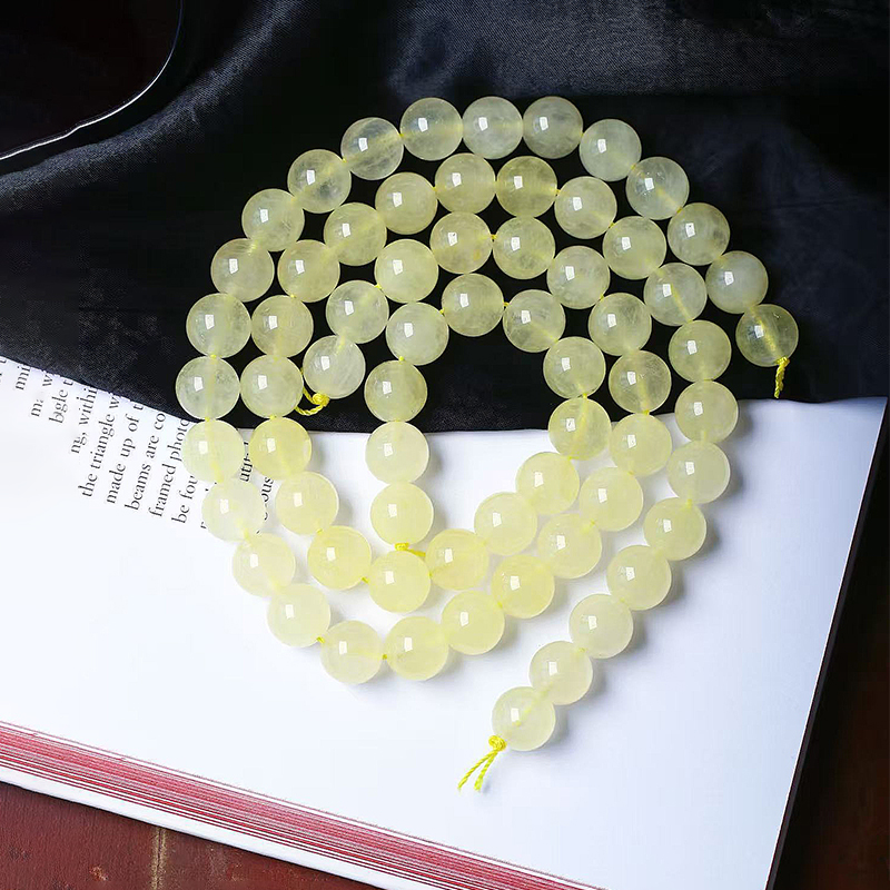 淡黄米黄玉髓圆珠串珠嫩黄水晶