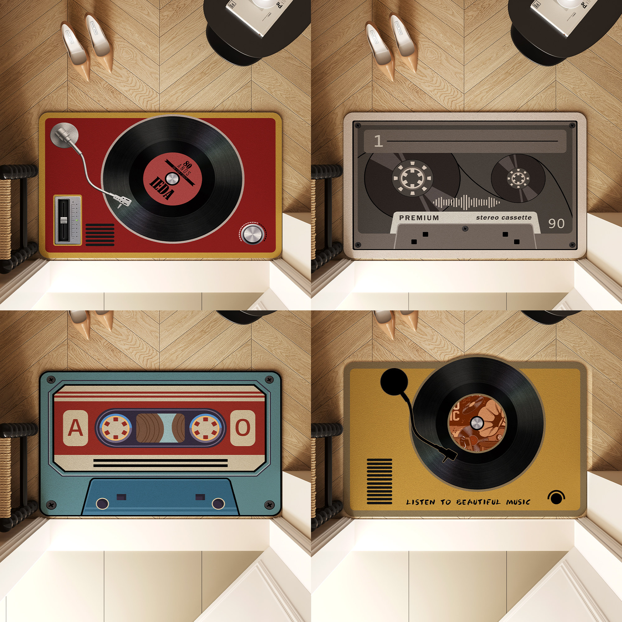 复古唱片机入户门丝圈地垫门口加厚防滑可裁剪脚垫进门玄关地毯