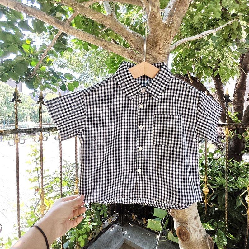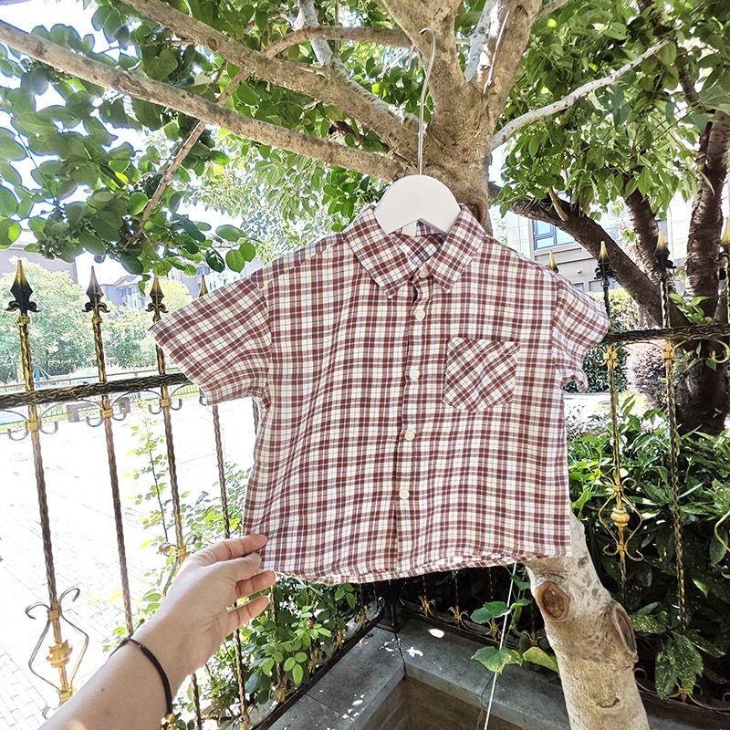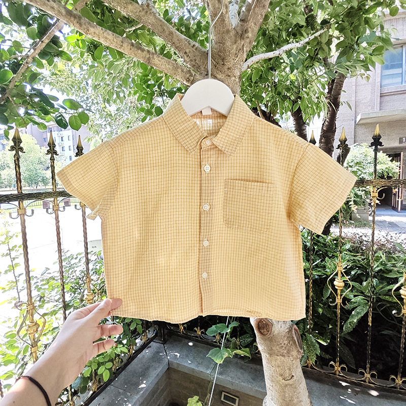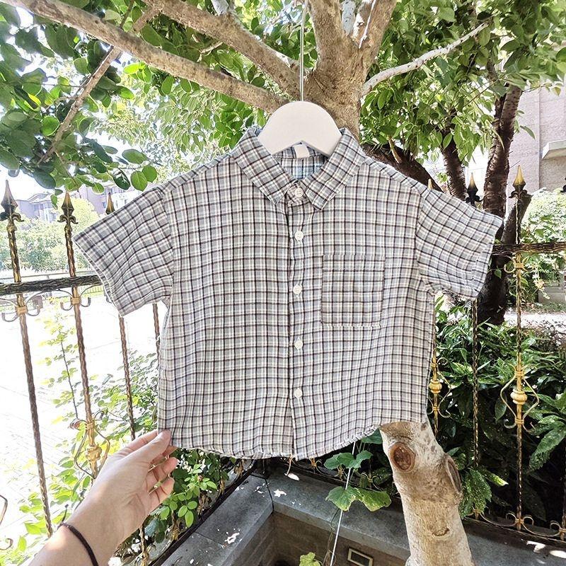 贝哆哈儿童夏季格子衬衫中小童短袖休闲翻领上衣男童女童汗衫衬衣