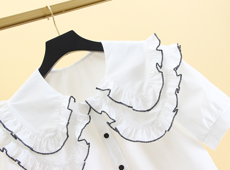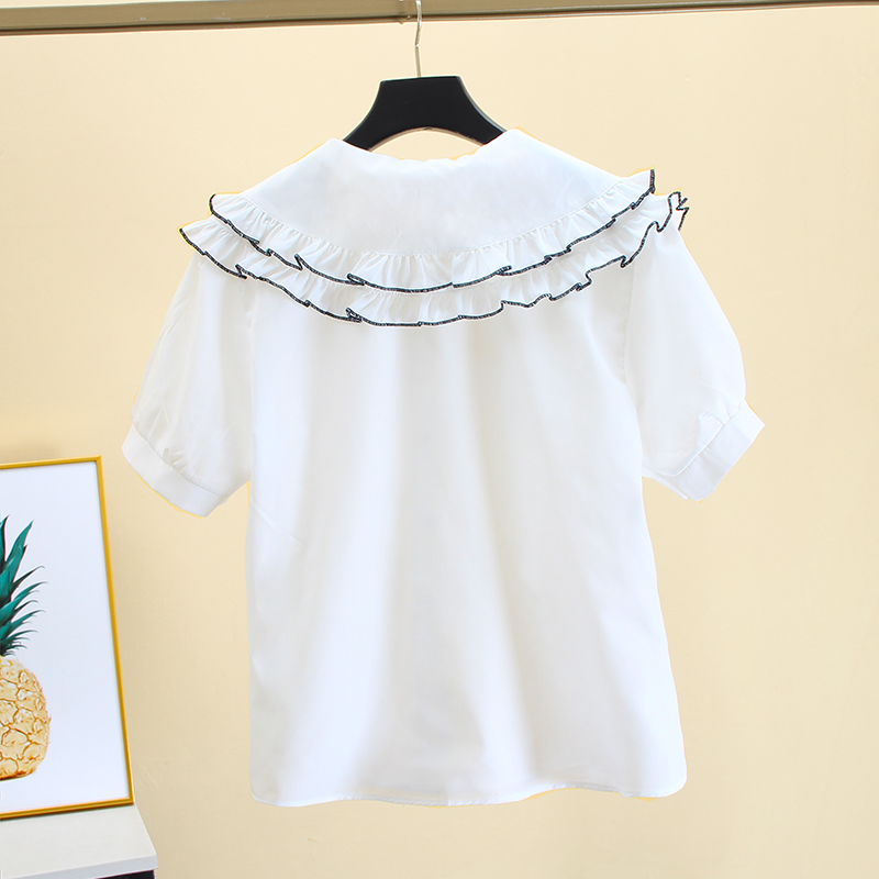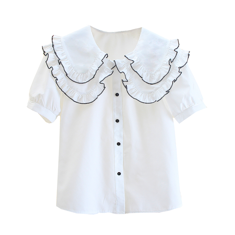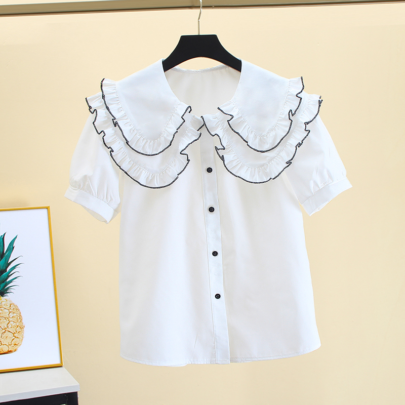白色短袖衬衫女设计感小众夏季新款甜美气质娃娃领宽松法式上衣