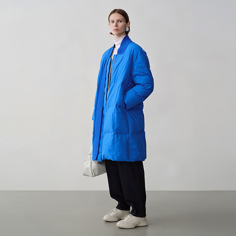 【轻羽系列】玛丝菲尔冬针织立领白鹅绒中长款羽绒服外套