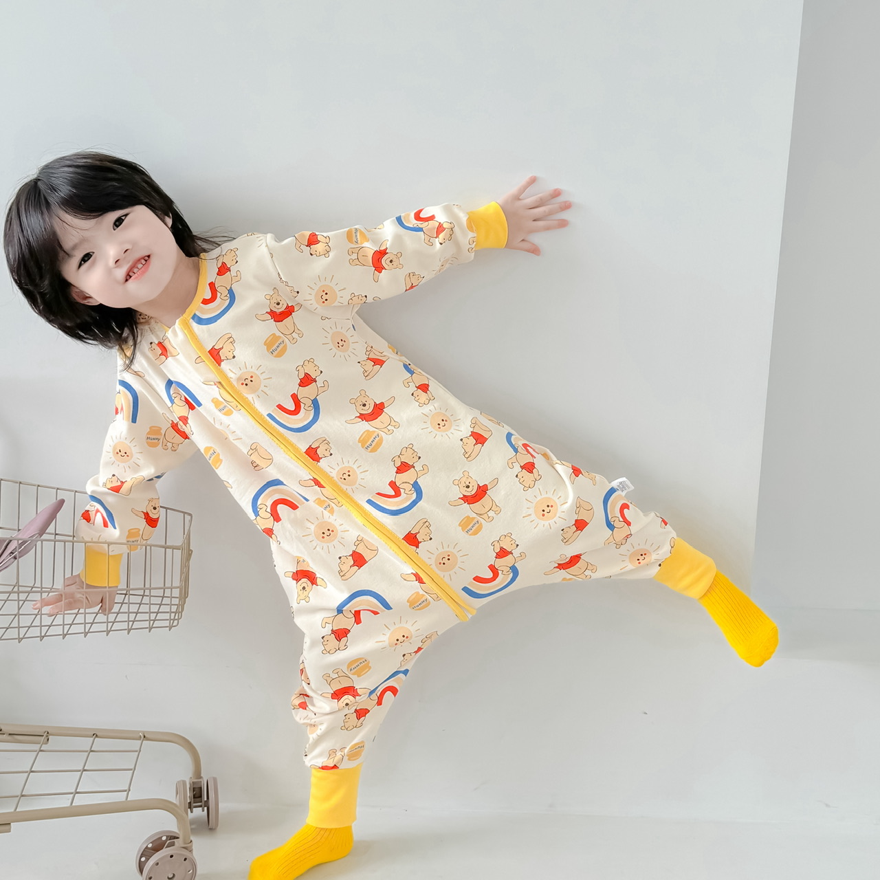 迪士尼卡通米奇睡袋春秋纯棉防踢被宝宝睡衣男女儿童家居服连体衣