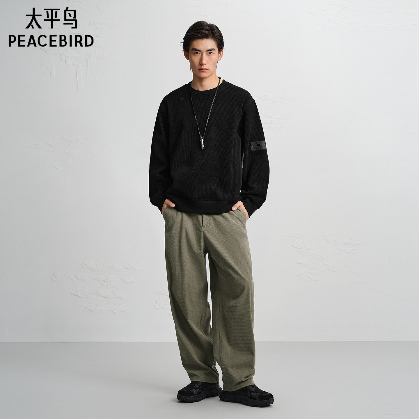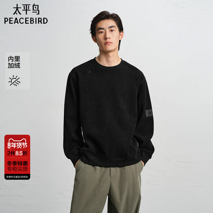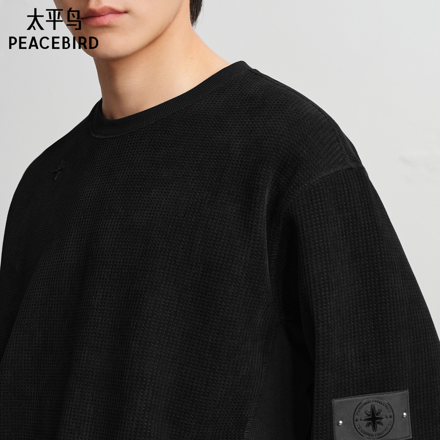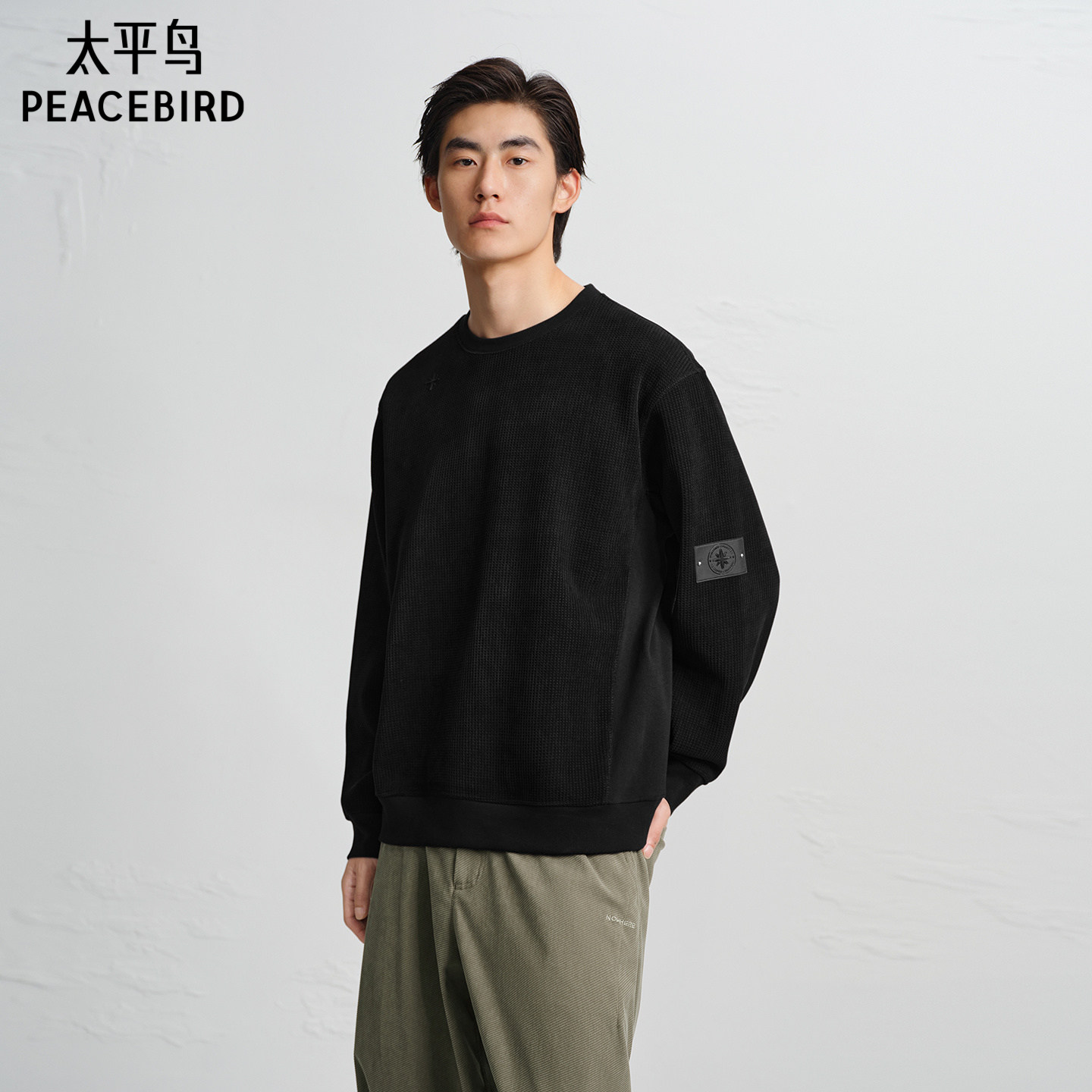 【商场同款】太平鸟男装 2025年冬季新款黑色圆领卫衣B2CRF4515