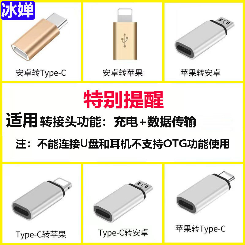 安卓转Typec转接头手机充电转换器micro转lighting适用华为苹果oppovivo三星iPhone转换插头数据线