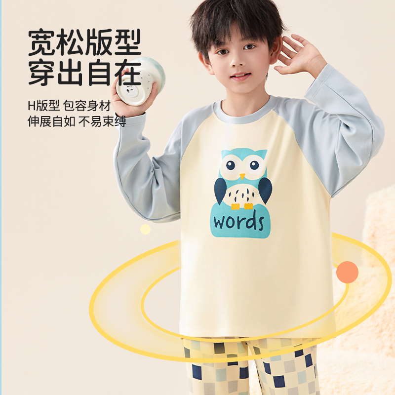 猫人儿童睡衣男童春秋纯棉长袖长裤套装中大童男孩家居服两件套